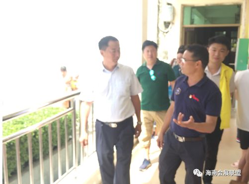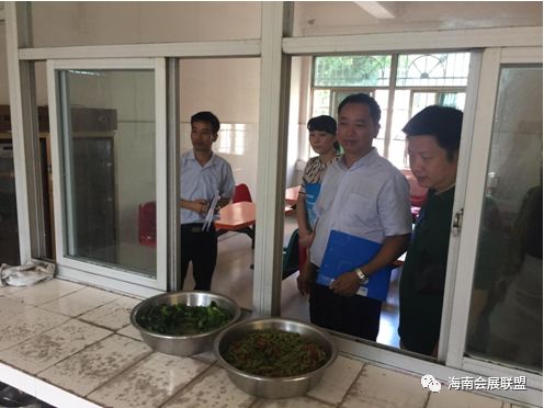儋州市民政局福利科负责人许士坚带领参观食堂(前一)